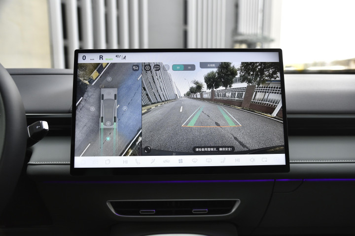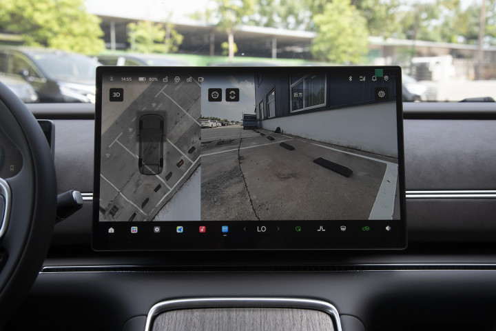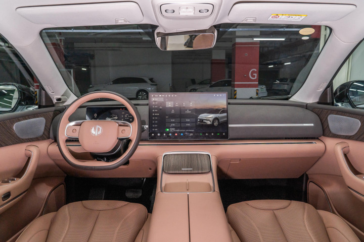 深蓝 S07 的内饰则是围绕着一块 15.6 英寸的向日葵式悬浮大屏,屏幕分辨率达 2.5K,显示效果出色。其搭载高通骁龙 8155 芯片,配合功能丰富的车机系统,操作逻辑简单易上手。车机不仅支持蓝牙 / 车载电话、HUAWEI HiCar/CarPlay/ 原厂原机手机互联、车联网、语音识别、Wi-Fi 热点等功能,还内置了 K 歌功能,家庭主妇带娃出行时,能随时开启车内欢唱模式,缓解旅途疲惫。前排采用隔音玻璃设计,有效隔绝外界噪音,为车内营造静谧空间,让家人在车内休息或娱乐时不受干扰。双区空调可独立调节主副驾温度,满足不同乘员对温度的需求,无论是怕冷的孩子还是怕热的家长,都能找到舒适体感。全景天窗与配备遮阳帘的全景天幕设计,既能让车内充满自然光线,提升通透感,又能在阳光强烈时通过遮阳帘阻挡热量与刺眼阳光,保障乘坐舒适性。此外,深蓝 S07 还配备了 55 英寸超大抬头显,行驶信息、导航指令等关键数据可直接投射在前挡风玻璃上,让驾驶者无需频繁低头查看仪表盘和中控屏,在专注路况的同时轻松获取信息,带娃出行时也能更安全便捷地驾驶。无论是日常导航还是娱乐需求都能轻松满足。